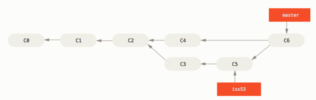 iss53브랜치가master에 Merge 할 수 있는 수준이 될 때까지 기다렸다가 Merge 하면hotfix와iss53브랜치가 합쳐진다.